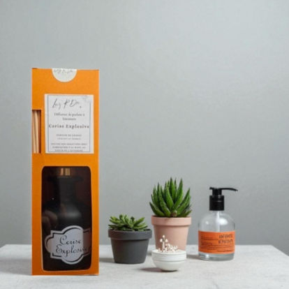 Ce flacon de parfum et ces bâtonnets vous permettent de profiter de long mois de ce délicat parfum de Cerise.