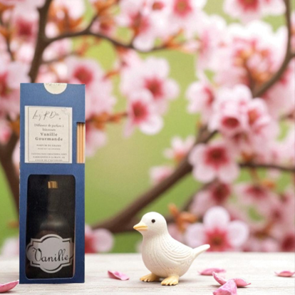 Ce flacon de parfum et ces bâtonnets vous permettent de profiter de long mois de ce délicat parfum de Vanille.