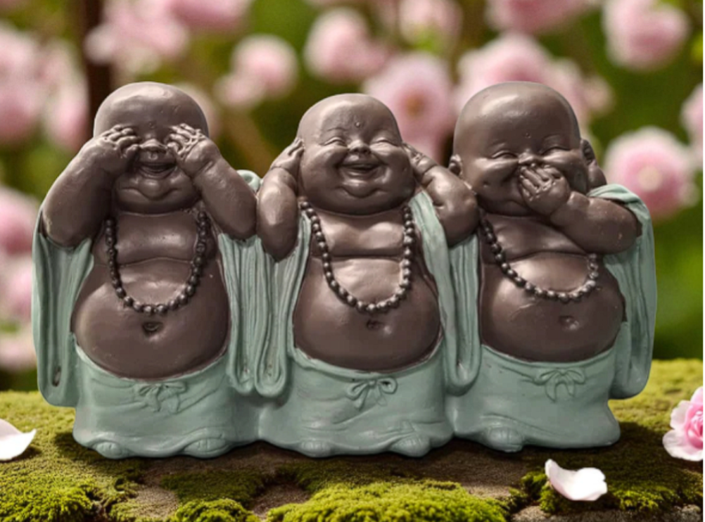 Ces 3 petits bébé bouddhas rieurs sont pleins de bonne humeur, ils vont illuminer votre intérieur pour une ambiance joyeuse et zen.