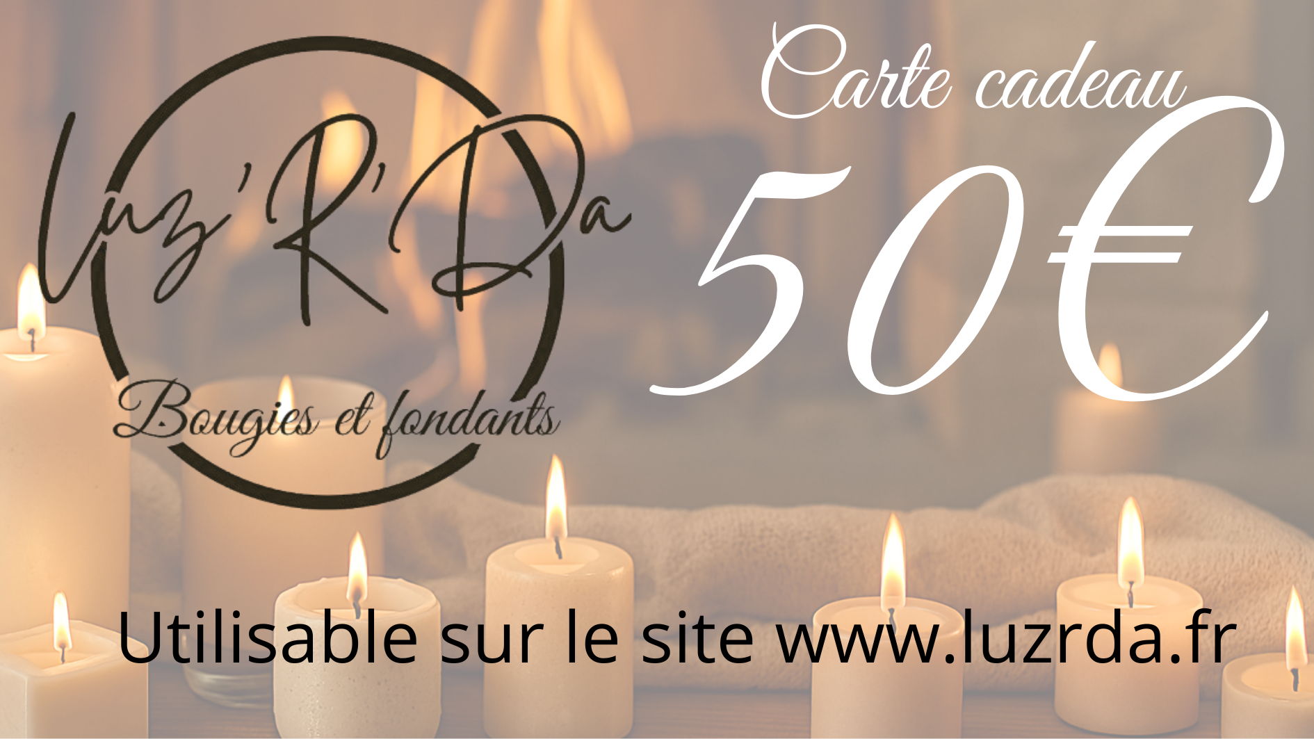 Carte cadeau de 25€ ou 50€, valable sur l'ensemble du site Internet, www.luzrda.fr